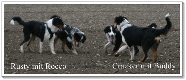 Erstes Treffen von Itch, Rusty und Cracker auf dem Hundeplatz