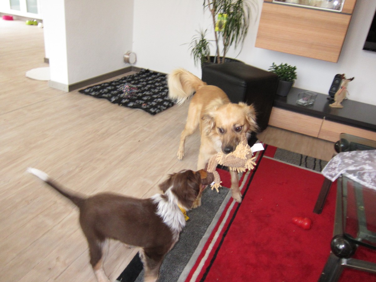 Die erste Nacht ist geschafft und Luna hat sich gleich mit dem Nachbarshund angefreundet
